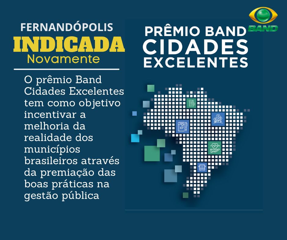 Fernandópolis é novamente finalista do prêmio ‘TV Band Cidades Excelentes’