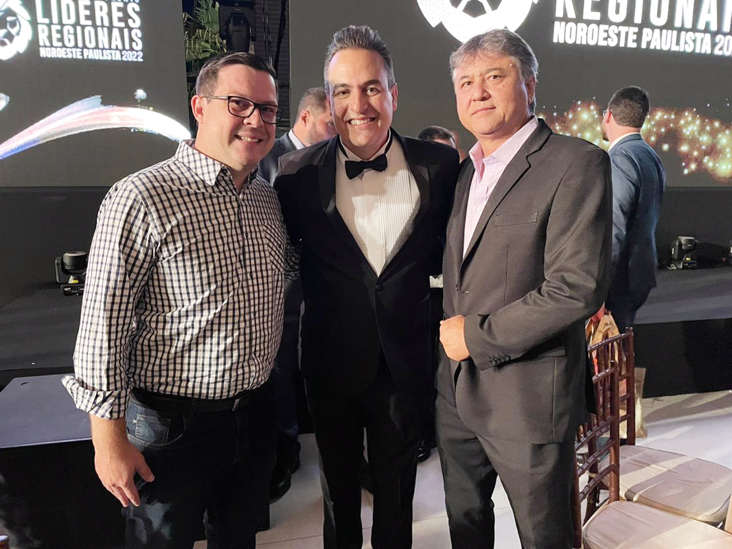 Marcelo Nossa e Wagner Kamiyama representam Fernandópolis no LIDE, junto a Marcos Scaldelai. Foto: Divulgação/Secom de Fernandópolis