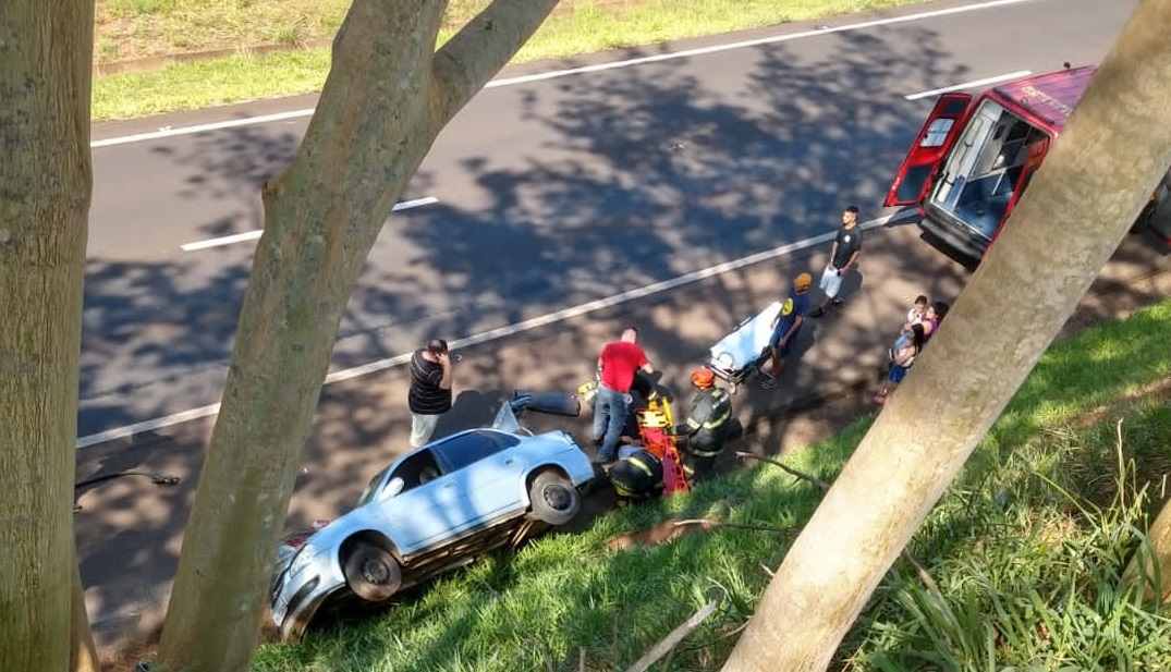 Um veículo GM/Corsa, por circunstâncias ainda a serem esclarecidas, acabou capotando após o motorista perder o controle da direção. Ele seguia no sentido capital interior e tinha placas de Jales.