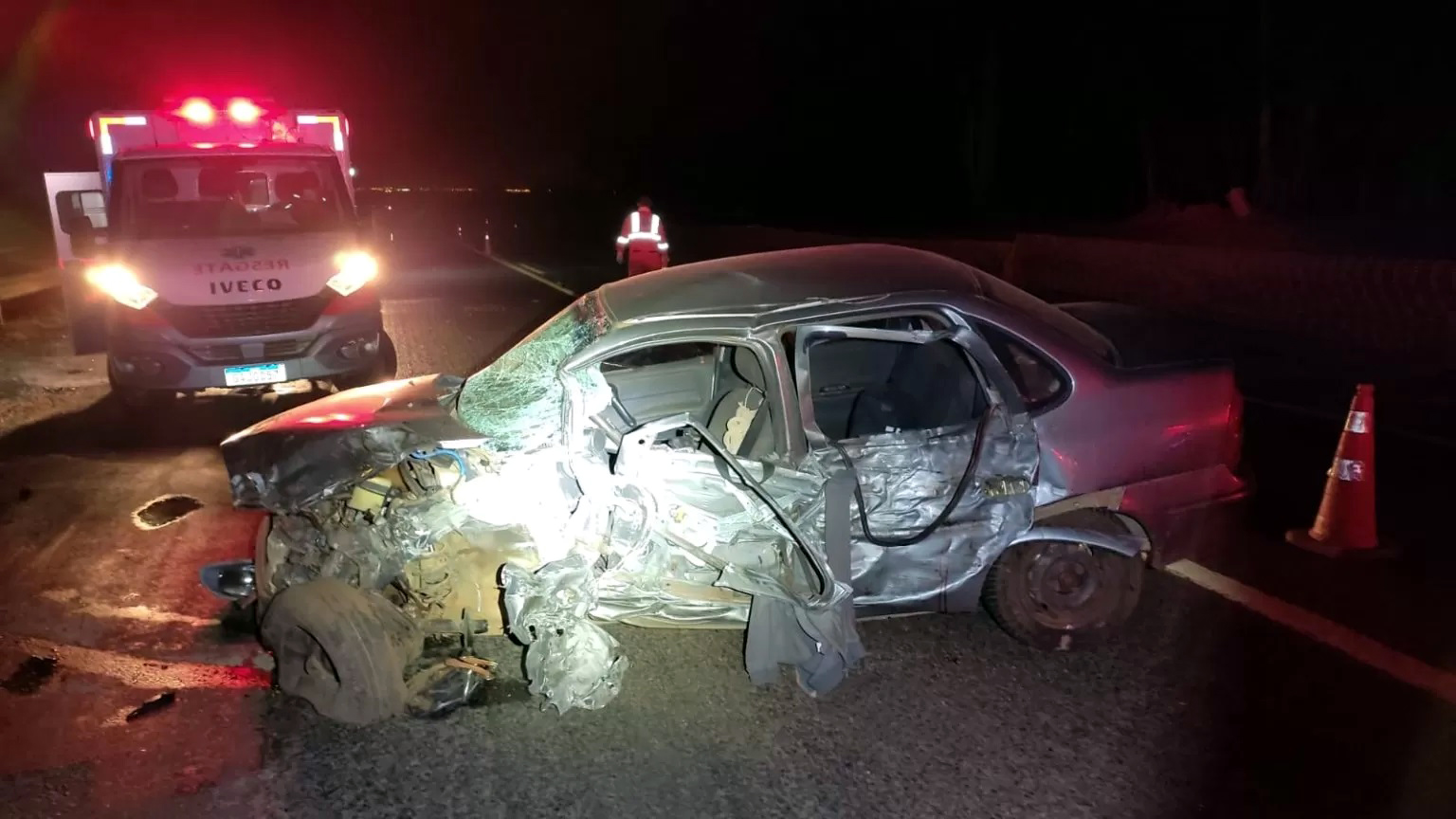 GM/Corsa colidiu frontalmente contra caminhão. Foto: Divulgação/Polícia Rodoviária Federal