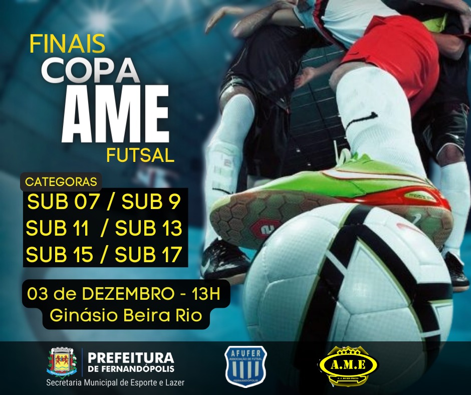 A final da 3ª edição da ‘Copa AME’ de futsal acontece neste próximo sábado, 03, a partir das 13h, no ginásio de esportes Beira-Rio. A competição foi dividida nas séries ouro e prata e reúne 75 equipes da região noroeste paulista.