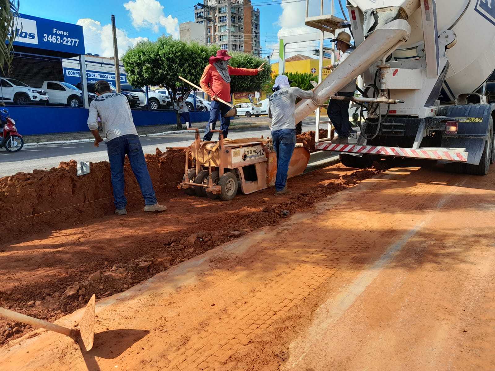 Operários trabalham na área central de Fernandópolis. Foto: Secom de Fernandópolis