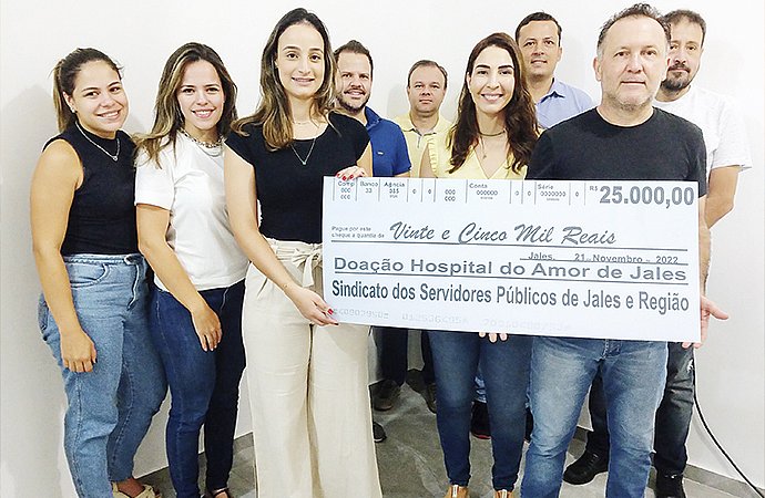 O Sindicato dos Servidores Públicos Municipais de Jales e Região, entidade que atende servidores públicos de 26 municípios da região, entregou nesta sexta-feira, 16 de dezembro, cheques simbólicos dos valores arrecadados na campanha anual realizada pela entidade em prol dos mais necessitados. Pela manhã, a diretoria entregou um cheque no valor de R$ 25 mil para o Hospital de Amor. Também foram doados R$ 3 mil para o Lar dos Velhinhos de Jales e R$ 3 mil para o Lar dos Velhinhos de Santa Fé do Sul, além de 1200 litros de refrigerante para o Fundo Social de Solidariedade incrementar as Cestas de Natal que serão entregues nesta semana.