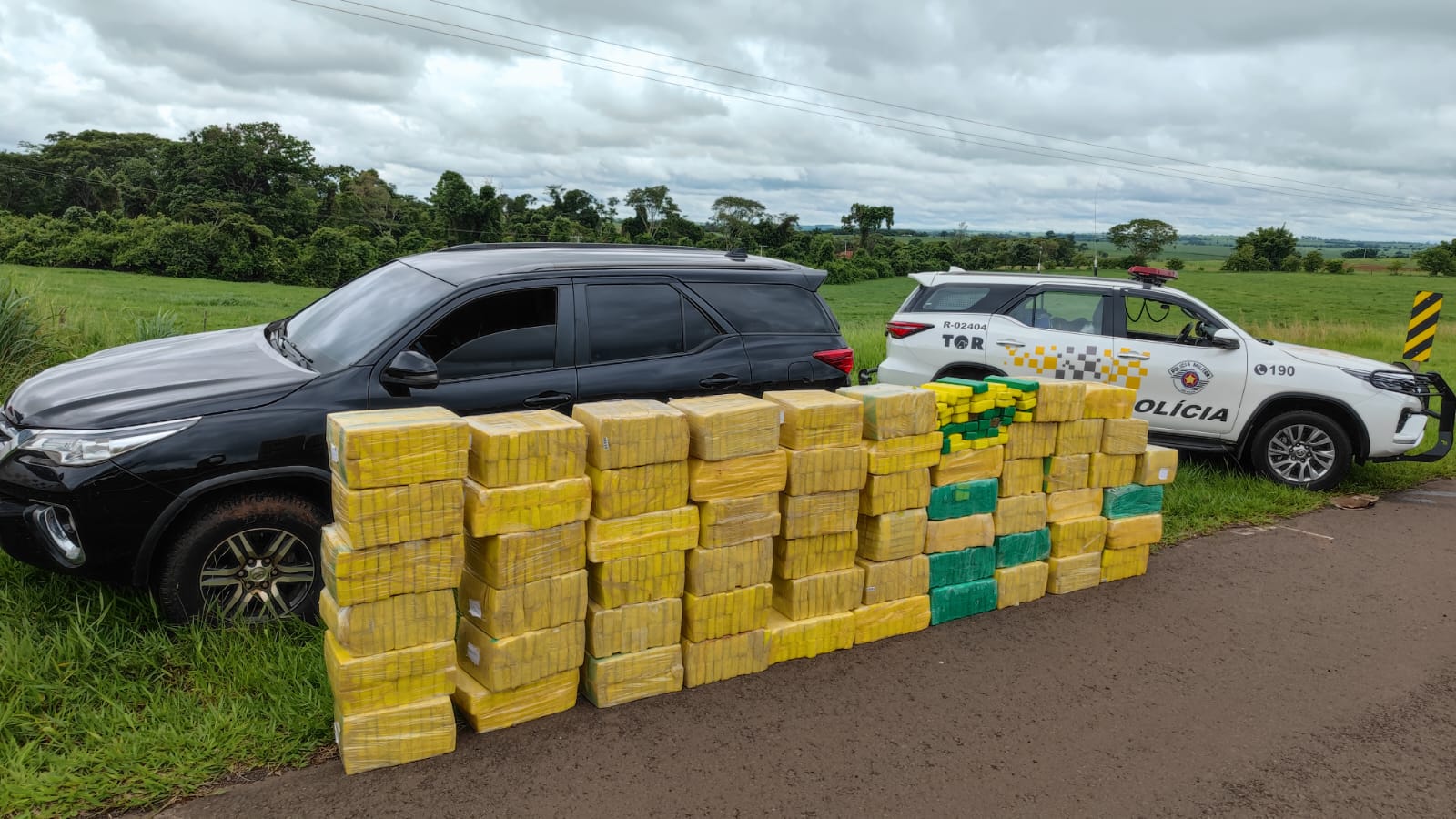 Policiais do TOR (Tático Ostensivo Rodoviário) apreenderam, nesta quarta-feira (4), grande quantidade de maconha ao recuperar um veículo Toyota SW4 roubado, durante ação na rodovia SP-461 (Gabriel Melhado) em Birigui.