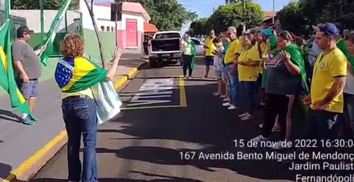 Acabou? Manifestantes em frente ao Tiro de Guerra de Fernandópolis em 15 de novembro. Foto: Reprodução / Facebook