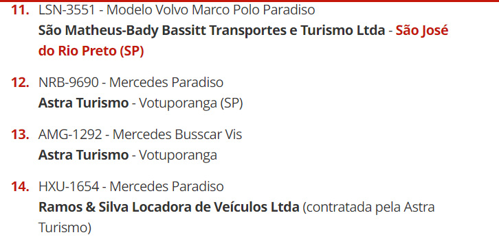 Relação parcial dos ônibus da região envolvidos na apuração. Fonte: PRF