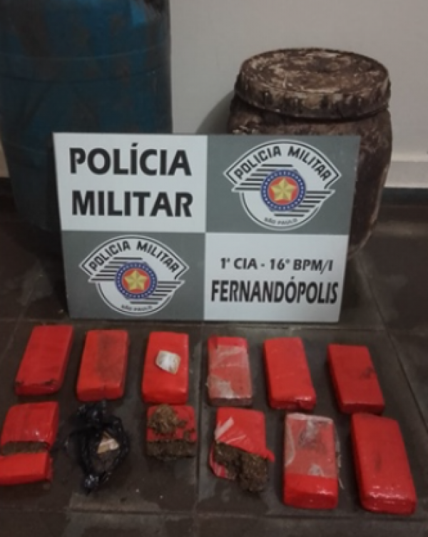 Dentro do saco que havia sido dispensado pelo menor, foram encontradas porções de maconha e crack, sendo que a maior quantidade de droga estava escondida em uma mata afastada do perímetro urbano. No local, foram encontrados dois tambores plásticos enterrados em locais diferentes, onde estavam escondidos os tijolos da droga.