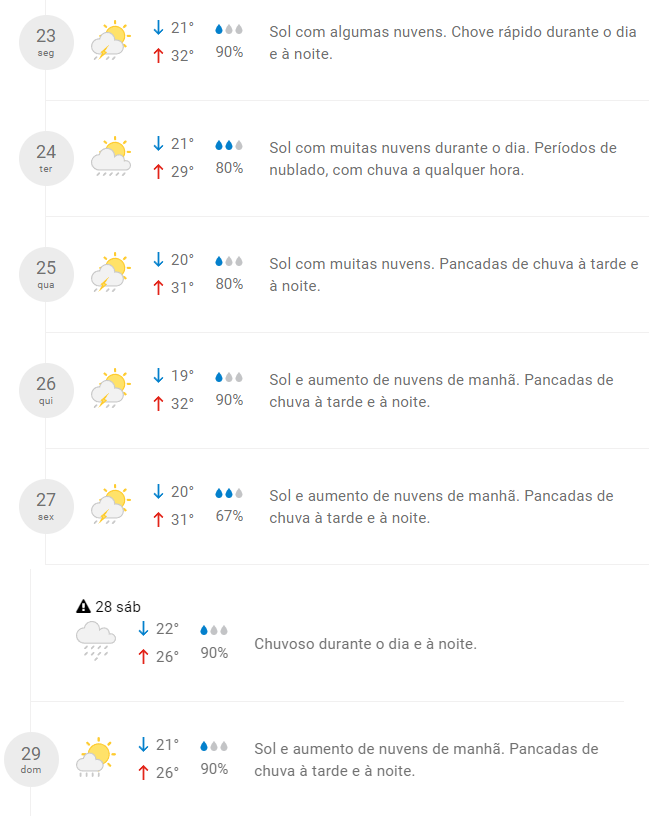 Confira previsão completa para a semana:
