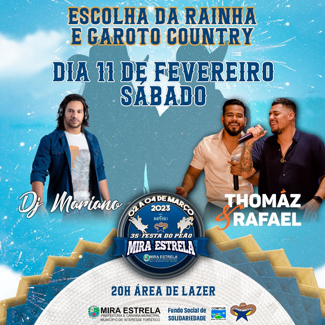 No próximo dia 11, sábado, no município de Mira Estrela, será realizado a escolha da rainha e garoto country da 35ª Festa do Peão.