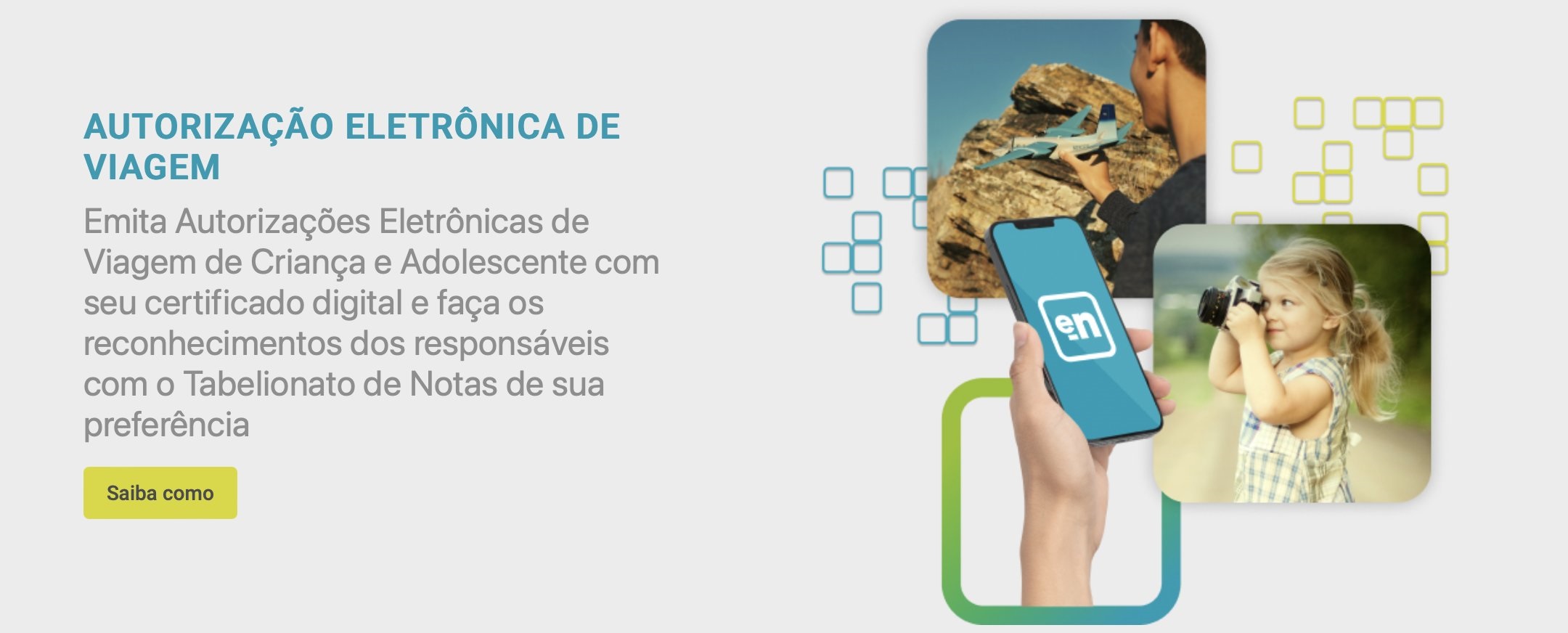 O processo de emissão da Autorização Eletrônica de Viagem Internacional é realizado por meio da plataforma e-Notariado, ambiente digital nacional para realização de atos notariais, onde os responsáveis pelo menor deverão abrir uma solicitação pela área “cidadão” do site, preenchendo as informações necessárias.