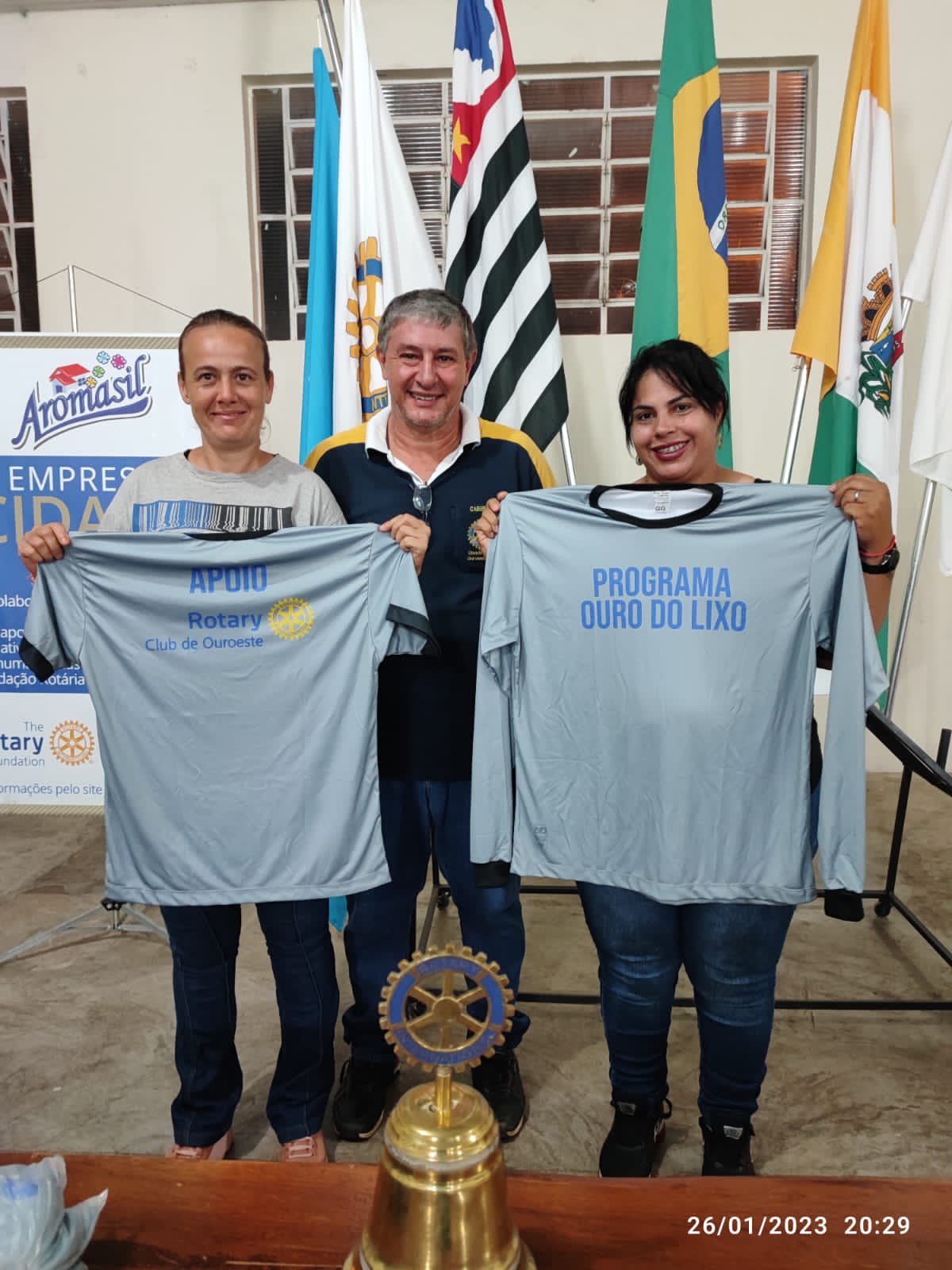 Na reunião ordinária do Rotary Cub de Ouroeste realizada no dia 26 de janeiro, foram entregues 19 camisetas 100% poliéster para as representantes do programa "Ouro do Lixo" de Ouroeste.