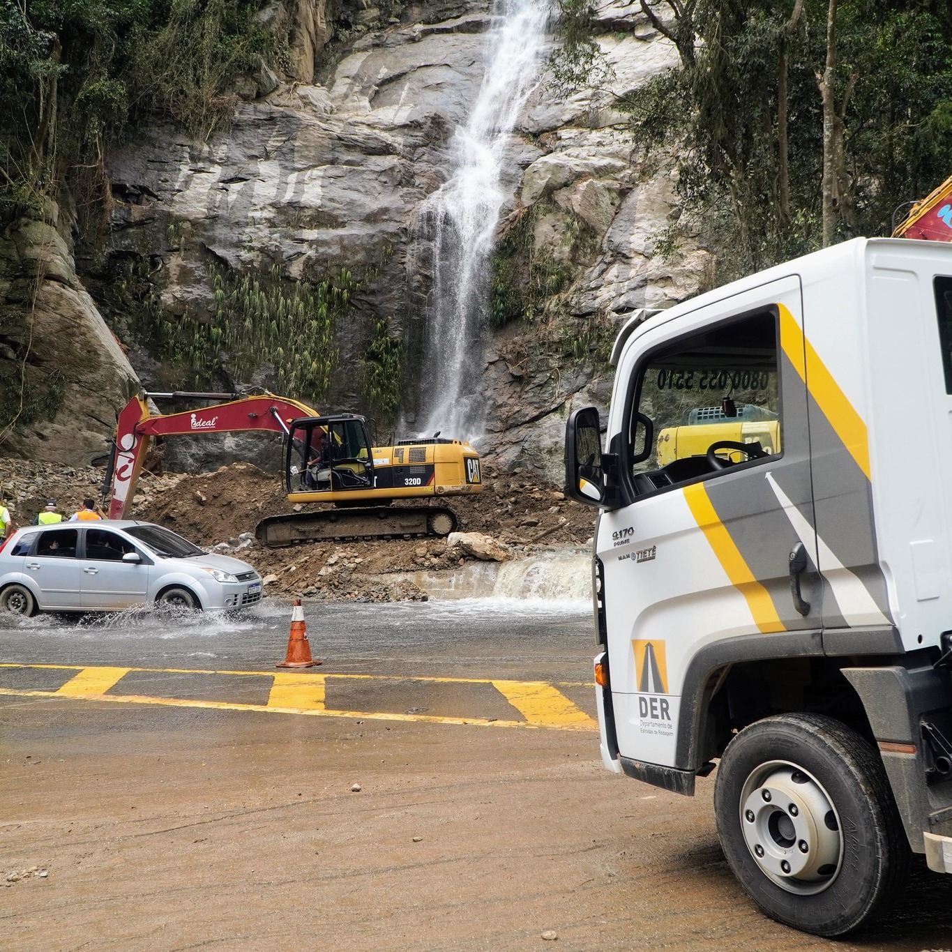 Os trabalhos para liberação das vias prosseguem. Na Rodovia Rio-Santos (SP-055) cinco pontos que estavam com interdição total e agora estão com interdição parcial: