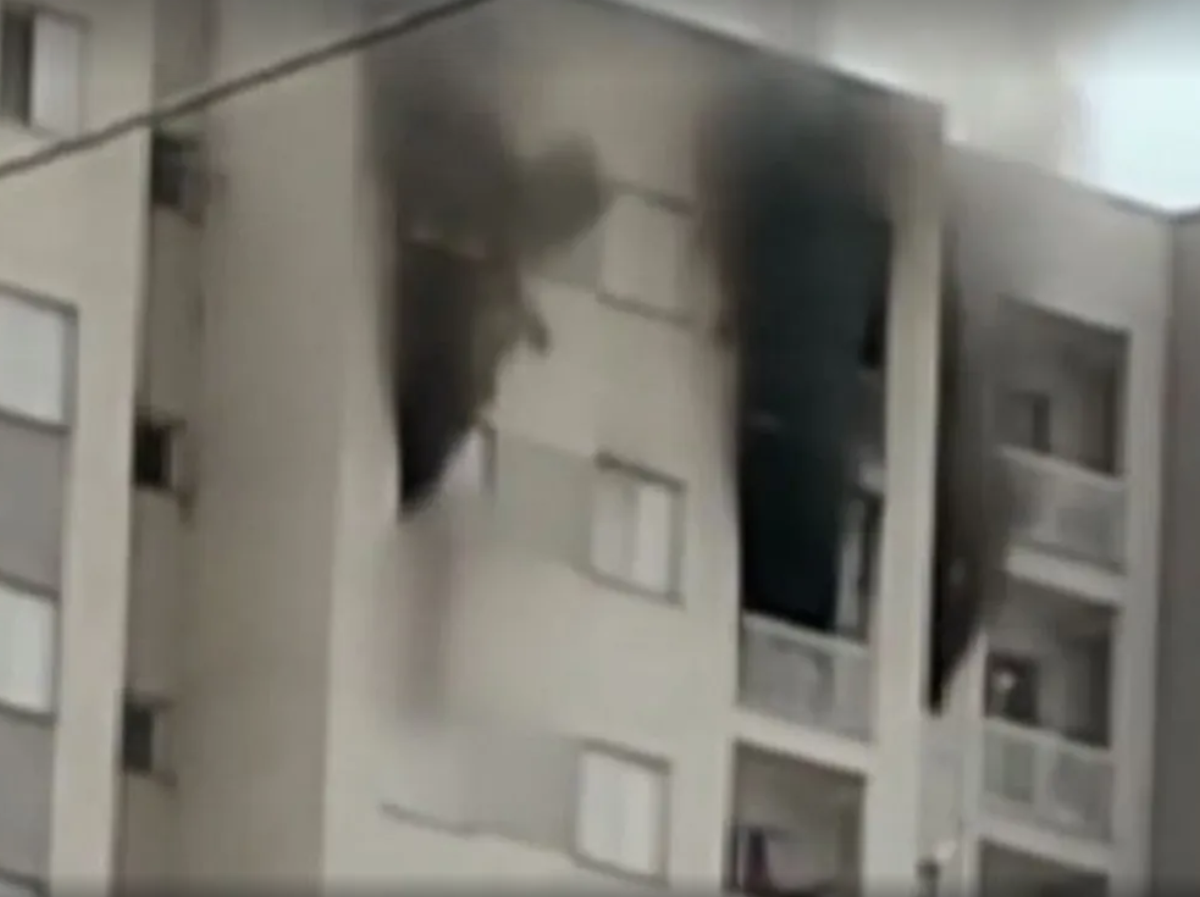 Na tentativa de escapar das chamas, morador conseguiu se segurar por alguns minutos em janela, mas não resistiu e caiu