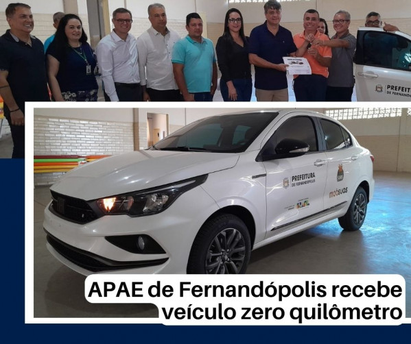 Na última quinta-feira, 02, o prefeito de Fernandópolis, André Pessuto, acompanhado de vereadores e secretários municipais, participaram da entrega de um veículo zero quilômetro, modelo Cronos para a APAE do município. O evento teve a participação de todos os alunos assistidos pela instituição e do músico Serginho Kamiyama, parceiro da entidade.