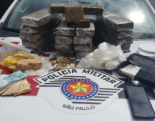 Os policiais viram em cima de um balcão grande quantidade de drogas, sendo que após busca no local foram encontrados quase 3kg de cocaína, 20 kg de maconha, uma pedra grande de crack, R$ 3.255,00 em dinheiro, 02 balanças de precisão, 01 celular Motorola, 02 relógios, 01 corrente (bijuteria) e apetrechos e embalagens para drogas. Ocorrência apresentada na Central de Polícia Judiciária onde o autor permaneceu preso.