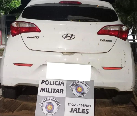 O veículo, um HB20 de cor branca, foi roubado pela cidade de Jardinópolis em 2014 - Foto: Divulgação/PM