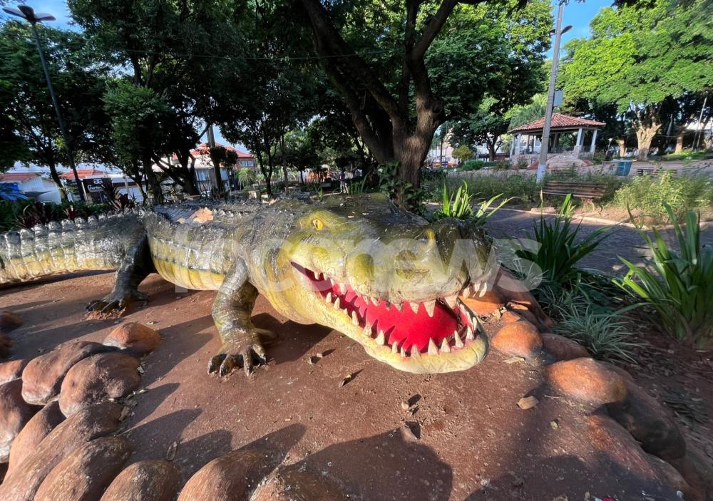 Escultura do jacaré foi danificada mais uma vez. Foto: Reprodução / FocoNews