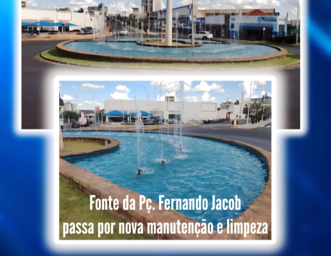 A equipe da Sabesp realizou mais um importante trabalho de limpeza e conservação da fonte na praça Drº Fernando Jacob em Fernandópolis. Após a revitalização do local, promovida pela empresa que é a responsável pelo fornecimento de água no município, um periódico serviço de manutenção é realizado na fonte que se transformou num grande cartão postal da cidade.