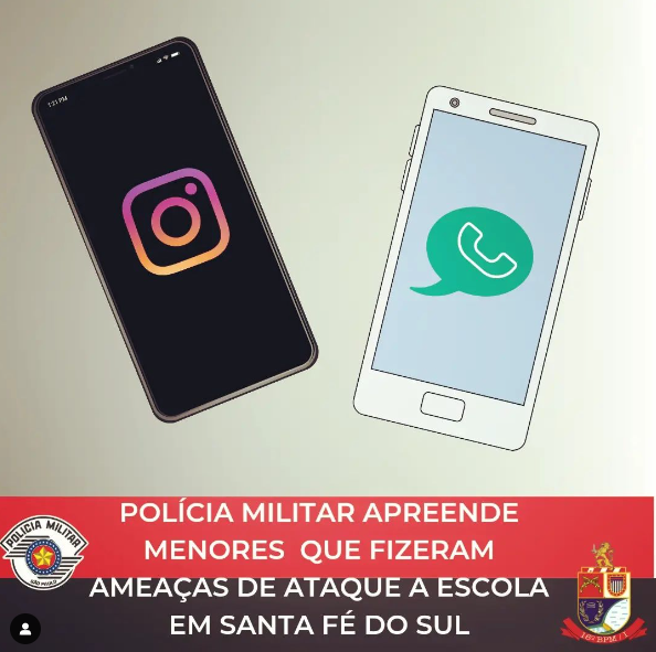 No último dia 11, policiais militares da 4ª Companhia do 16º Batalhão de Polícia Militar de Santa Fé do Sul apreenderam menores por ameaça a Escola Estadual Itael de Mattos. A equipe policial da DEJEM - Ronda Escolar foi solicitada pela diretora, que relatou ter tomado conhecimento de um possível ataque à escola.