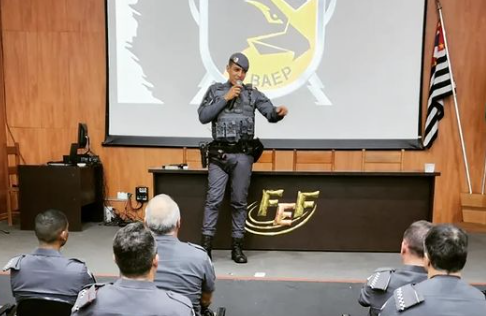 Oficiais da polícia recebem Instrução Técnica para atendimento em escolas durante uma crise