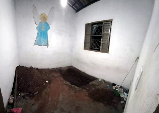 Cova onde vítima foi sepultada dentro do quarto. Foto: Reprodução / Arquivo Pessoal