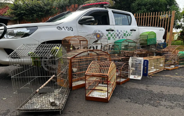 Nesta terça-feira (18), a Polícia Militar Ambiental de São José do Rio Preto encontrou 30 aves silvestres da fauna nativa brasileira em cativeiro na residência de um homem no bairro Floresta Parque. Após receberem uma denúncia, as equipes foram até a casa do suspeito e encontraram os pássaros em gaiolas. Três das aves possuíam anilhas falsificadas e 27 não tinham anilhas.