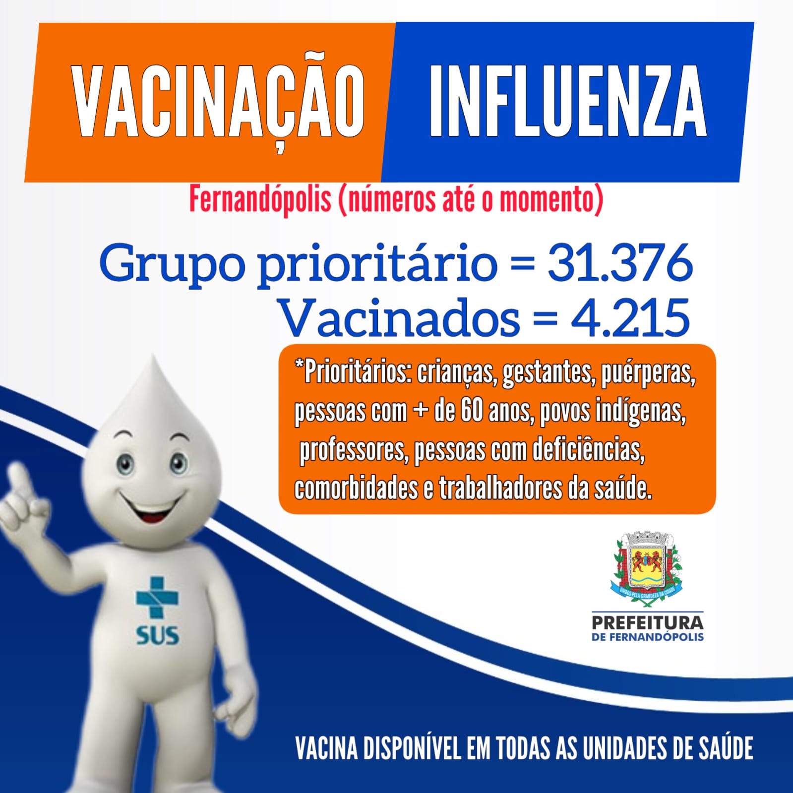 A Secretaria Municipal de Saúde da Prefeitura de Fernandópolis identificou, em balanço parcial da Campanha de Vacinação Contra a Influenza, que a procura pelo imunizante está abaixo do esperado nos primeiros dias da ação.