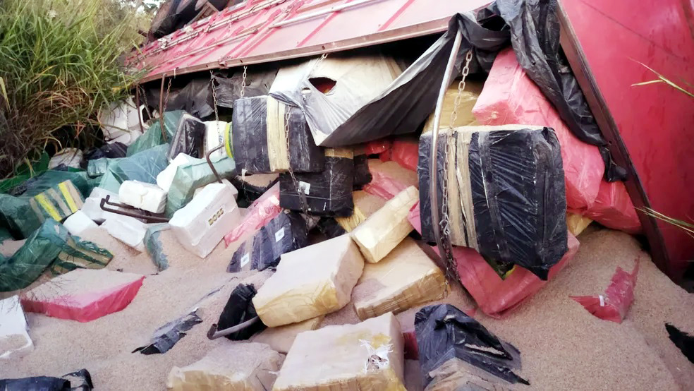 Um caminhão carregado com grãos de arroz tombou no local e junto com a carga do cereal os agentes policiais descobriram diversos pacotes acondicionados com droga. A constatação deu positiva para maconha e a estimava foi de que havia mais de 20 toneladas do entorpecente na carreta.