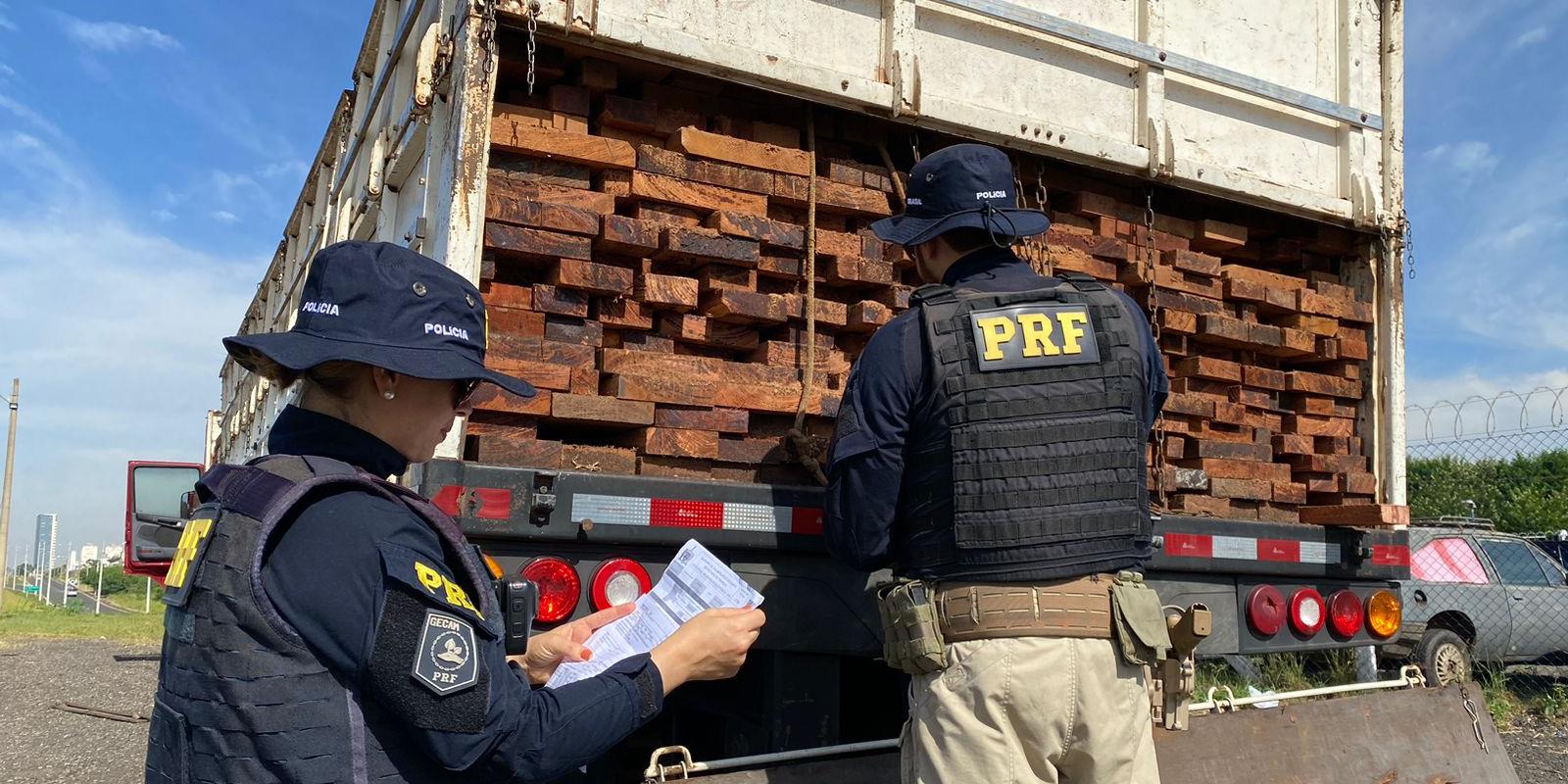 A apreensão faz parte da operação de combate ao transporte de madeira ilegal na BR-153, na região de Rio Preto. As ações começaram na segunda-feira e seguem até quarta-feira, 10.