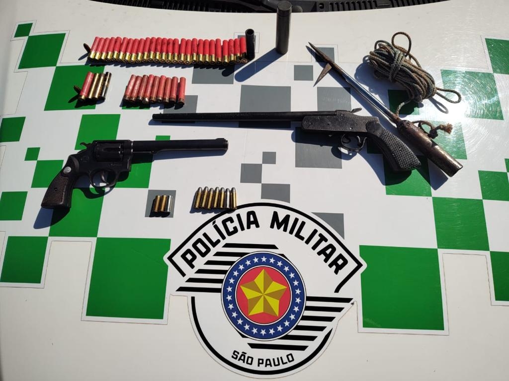 Na última segunda-feira, dia 8, dois flagrantes foram registrados em Mira Estrela. No primeiro, a equipe da Polícia Ambiental, durante as Operações “Impacto” e “Curumim”, em cumprimento à Mandado de Busca e Apreensão em um rancho a margem do Rio Grande em Mira Estrela, flagrou a posse ilegal de arma de fogo e munição de uso permitido.