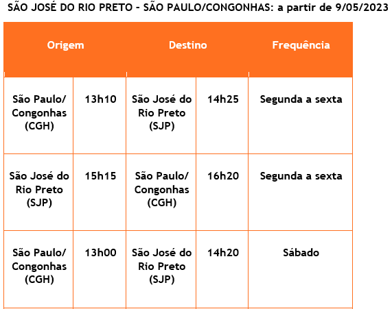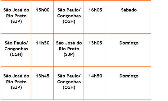 Os bilhetes entre São José do Rio Preto e o aeroporto de Congonhas (CGH) podem ser adquiridos no site e no aplicativo da GOL, nas lojas GOL nos aeroportos, pelo site e aplicativo da Smiles, pelo telefone da Central de Relacionamento2121) e nas agências de viagem.