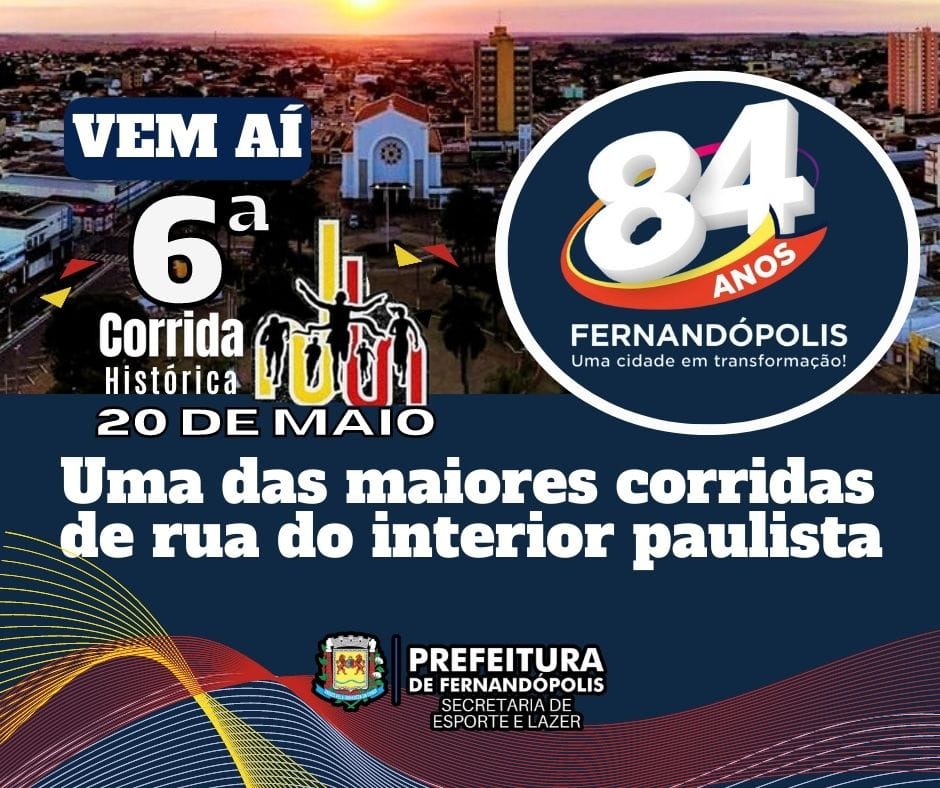 Em contagem regressiva, a 6ª Corrida Histórica de Fernandópolis, uma das provas de atletismo de rua mais importantes do interior paulista, está com inscrições abertas até o próximo dia 16.