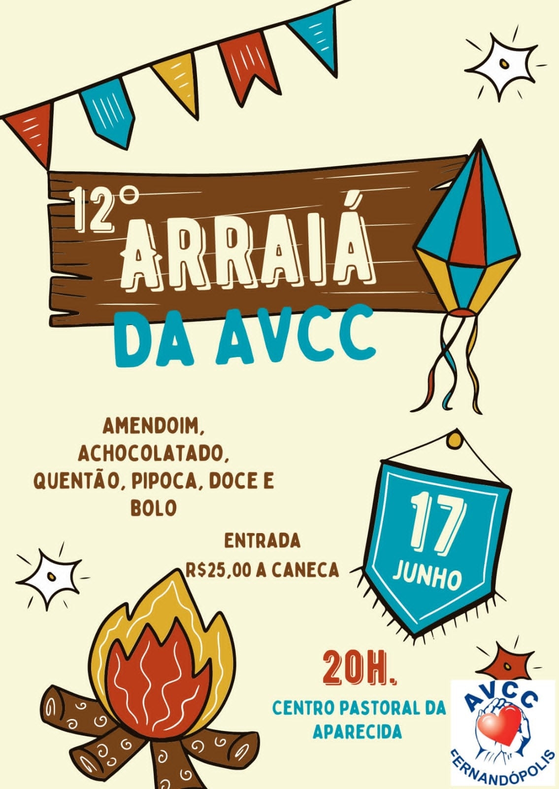 No próximo dia 17 de junho, às 20h, será realizada a 12ª edição do Arraiá da AVCC (Associação dos Voluntários no Combate ao Câncer), no Centro Pastoral da Aparecida, de Fernandópolis.