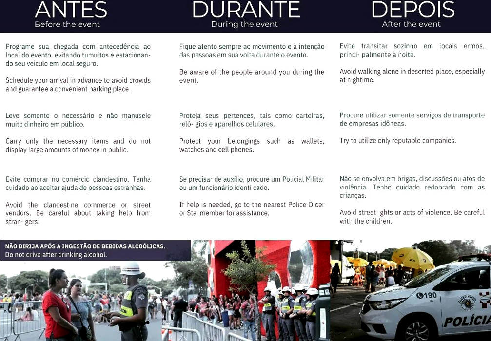 Medidas de segurança para os eventos que ocorrerão nesta semana