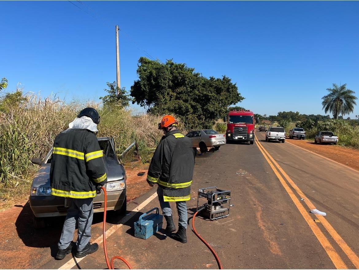 A colisão ocorreu na área do município de Indiaporã neste último domingo, 14/05/2023, e envolveu um veículo Fiat/Uno e um Fiat/Siena.
