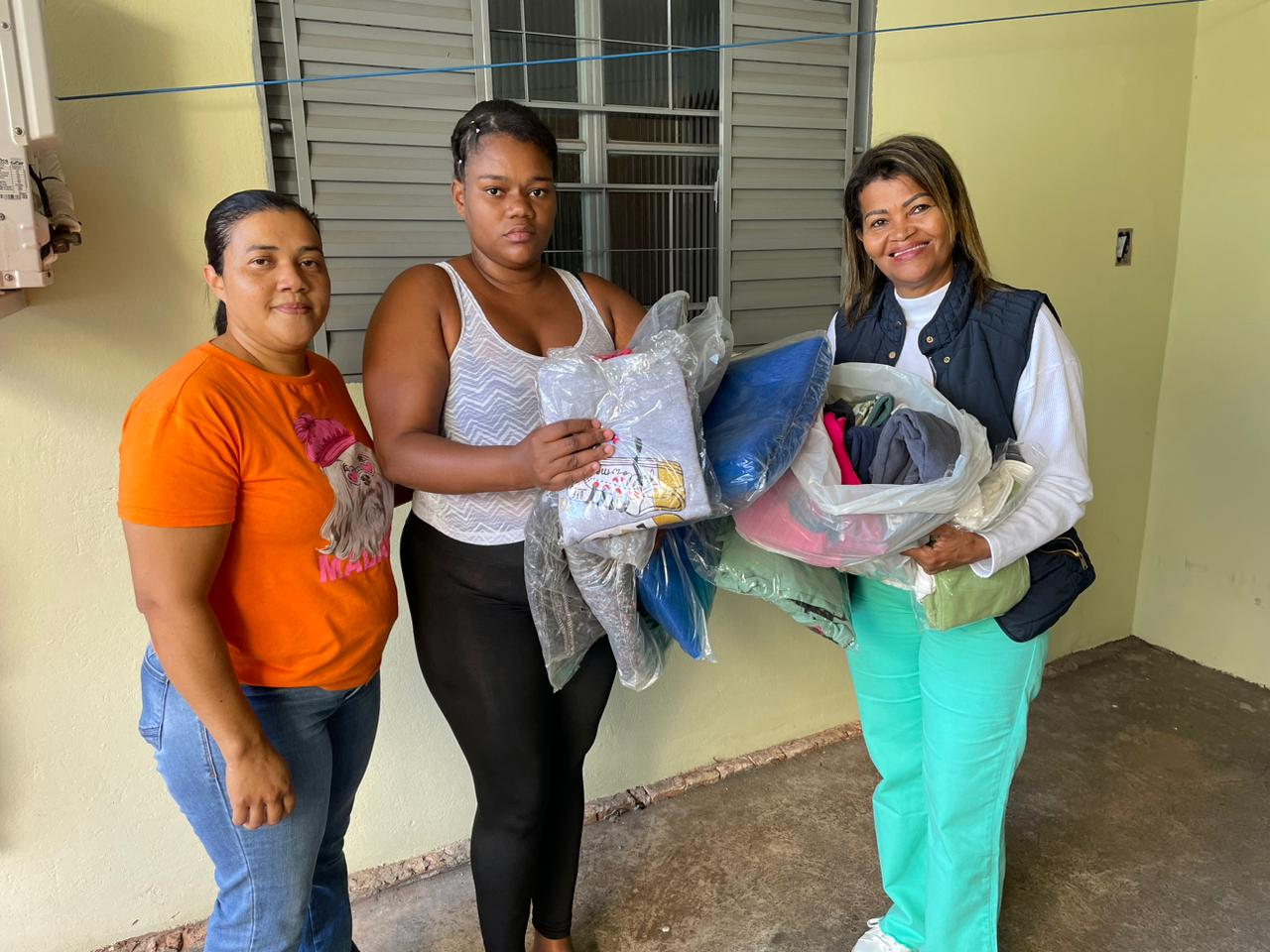 A entrega dos cobertores foi coordenada pela equipe do Fundo Social de Solidariedade do município.