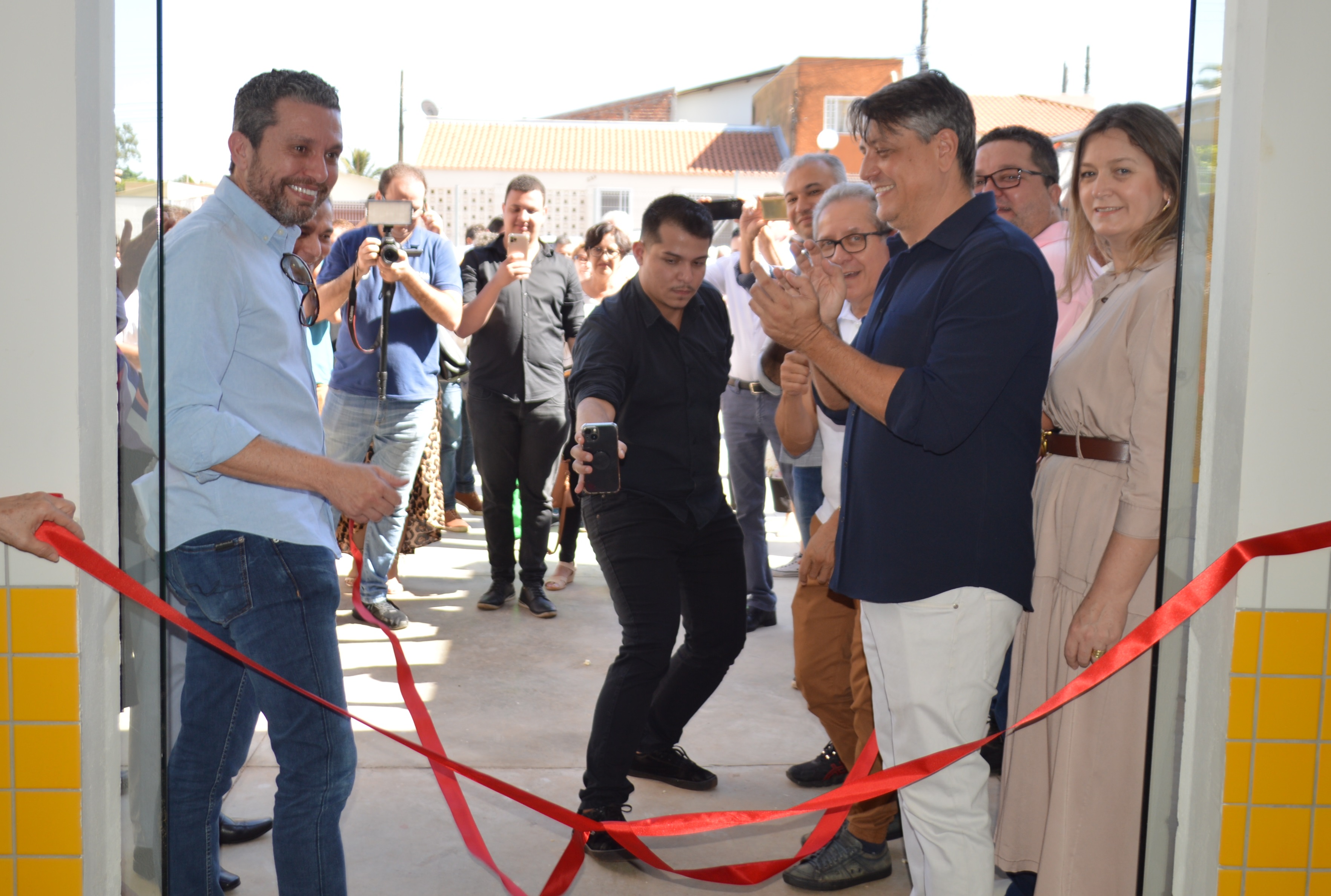 Autoridades descerram a fita inaugural da unidade escolar. Foto: Secom de Fernandópolis