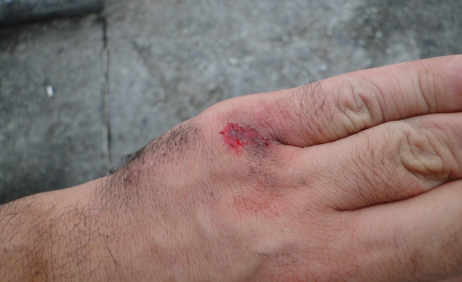 Homem se desequilibrou ao encostar na linha e caiu no chão, sofrendo ferimento em uma das mãos; acidente não foi registrado pela vítima