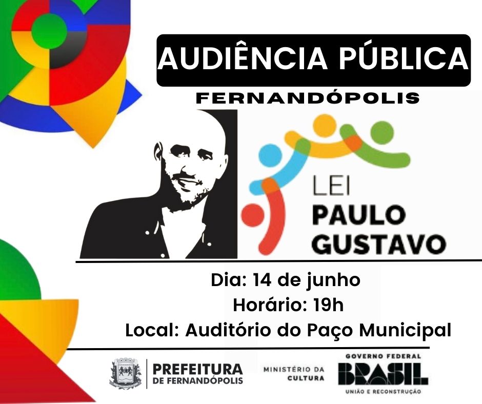 Na próxima quarta-feira, 14, a Prefeitura de Fernandópolis, por meio da Secretaria Municipal de Cultura e Turismo, promove uma audiência pública com a apresentação do plano de ação para a implementação da Lei Paulo Gustavo (LPG,) no município.