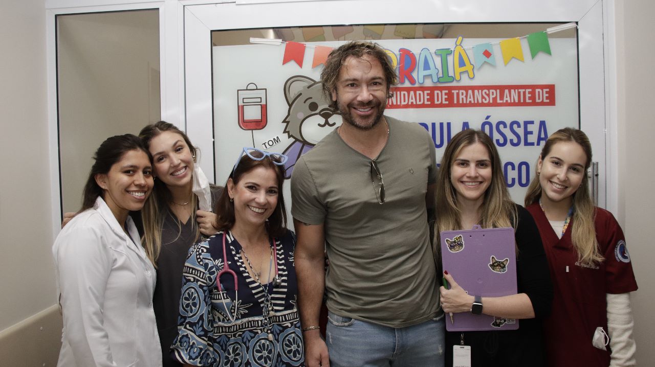 Ex-jogador Lugano visita hospital da região e celebra ‘pega’ da medula óssea de paciente