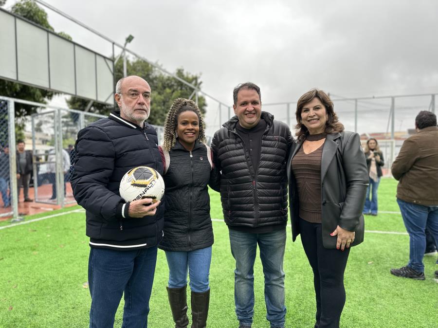 Após os pronunciamentos, as placas de inauguração foram descerradas pelas autoridades e a secretária de Esportes do Estado de São Paulo fez questão de dar o primeiro arremesso na quadra de basquete e o chute simbólico no campo de futebol society ao lado do prefeito Luis Henrique, da vice Marynilda Cavenaghi, do secretário de esportes Wilter Guerzoni e das crianças e adolescentes presentes.