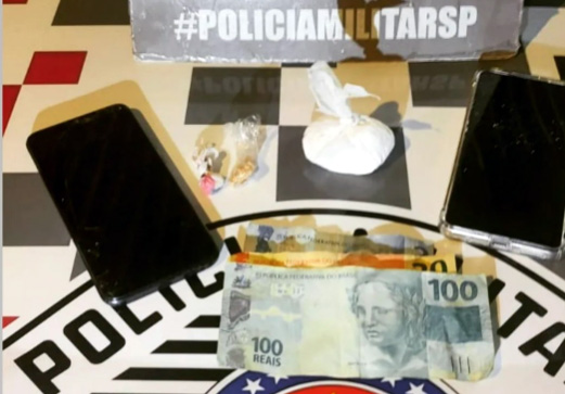 Durante o patrulhamento da Força Tática, a equipe visualizou uma adolescente, sobre a qual já pesam diversas denúncias de tráfico de drogas, sendo abordada e localizado no bolso de sua blusa uma porção grande de cocaína, um celular e R$ 22,00.