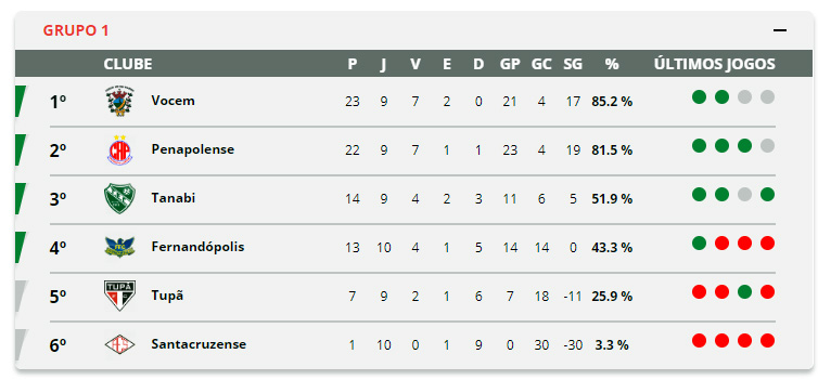 Já estão classificados à segunda fase: Vocem, Penapolense, Tanabi e Fernandópolis (Grupo 1); Taquaritinga, Francana, Catanduva e América (Grupo 2); XV de Jaú, São-Carlense, União São João e Independente (Grupo 3); Ska Brasil, União Barbarense e Amparo (Grupo 4); Flamengo, Guarulhos e Joseense (Grupo 5); e Jabaquara e Nacional (Grupo 6).