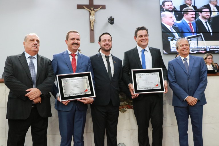 Em sessão solene realizada na noite desta quinta-feira, dia 29 de junho, a Câmara Municipal de São José do Rio Preto homenageou os políticos Itamar Borges e Geninho Zuliani. Eles receberam o título de Cidadão Honorário Rio-pretense, em reconhecimento aos relevantes serviços prestados à comunidade local.
