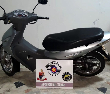 A equipe policial após receber informações de que dois indivíduos estariam com uma motocicleta produto de furto pelo município iniciou patrulhamento direcionado. Sendo que pela Avenida dos Bancários foi localizada a Honda Biz estacionada dentro da garagem de uma residência com o emplacamento aparente, sendo possível realizar a pesquisa onde se confirmou ser produto de furto pelo município de Américo de Campos em 29/06/23.