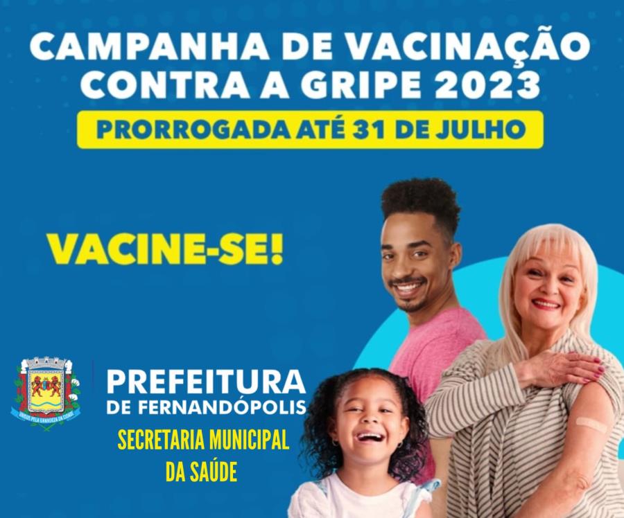 A Campanha de Vacinação contra a Influenza foi novamente prorrogada em Fernandópolis e vai até o dia 31 de julho, conforme determinação do Ministério da Saúde.