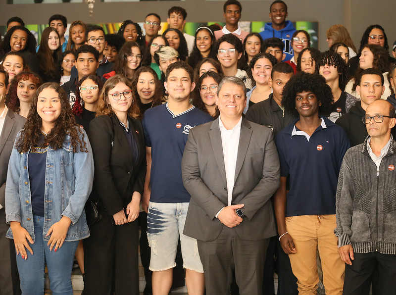 Governador junto a estudantes no lançamento do Provão Paulista. Foto: Divulgação / SeCom-SP