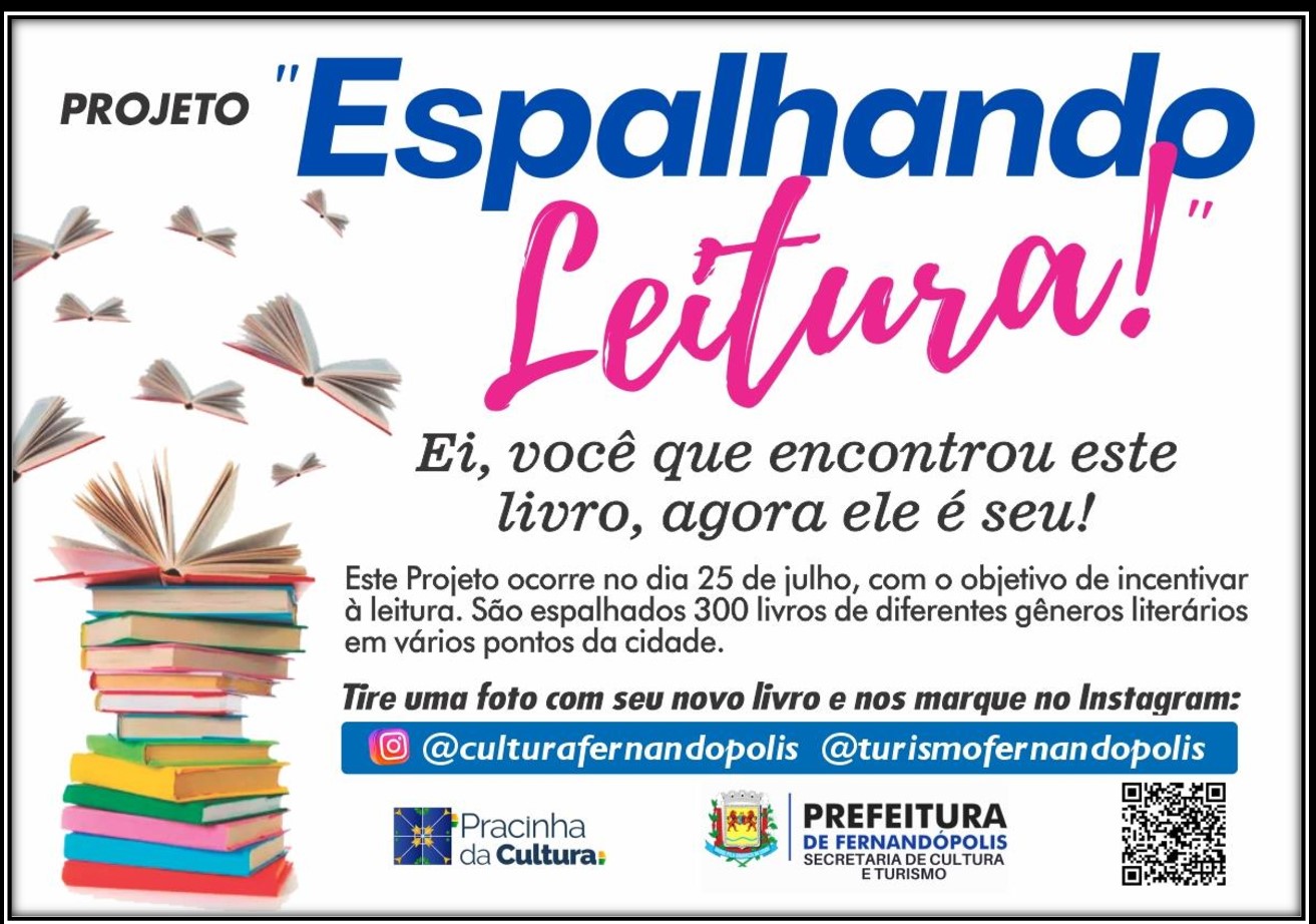 No dia 25 de julho comemora-se o “Dia do Escritor” e para celebrar a data, a Secretaria Municipal de Cultura e Turismo, por meio da Biblioteca Municipal, realiza mais uma edição do projeto ‘Espalhando Leitura’.