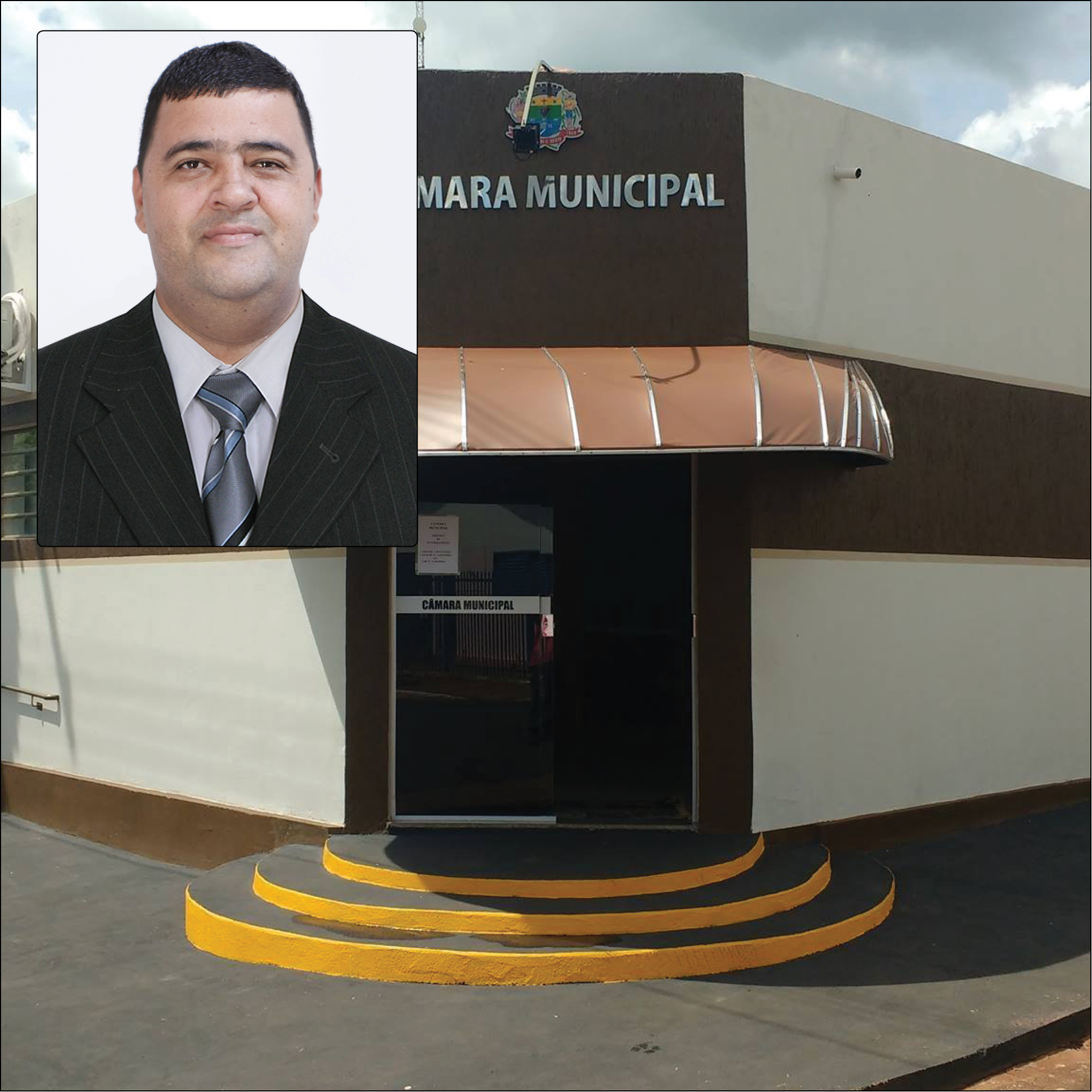Sede do Legislativo guaraniense. No detalhe o presidente Anderson de Souza que assinou a exoneração. Foto: Divulgação / C.M. Guarani