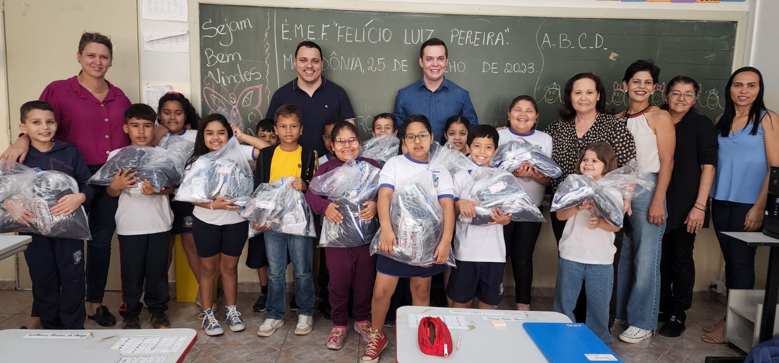 Em Macedônia, nesta terça-feira, dia 25, no primeiro dia de retorno das aulas referente ao 2° semestre do ano letivo, foi realizada a entrega do "KIT DE UNIFORMES ESCOLARES" aos alunos das escolas da rede municipal de ensino de Macedônia: CEMEI "José Marques de Toledo" e EMEF "Felício Luiz Pereira".
